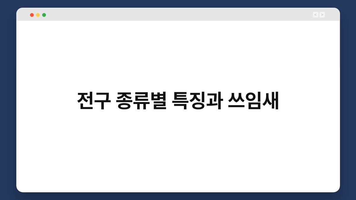 전구는 우리의 일상에서 빼놓을 수 없는 필수품입니다. 하지만 전구 종류가 다양해 어떤 것을 선택해야 할지 고민이 많으시죠? 각 전구는 특징과 쓰임새가 다르기 때문에 상황에 맞는 선택이 중요합니다. 이 글에서는 전구의 종류별 특징과 그 쓰임새를 살펴보겠습니다. 여러분의 선택이 보다 현명해지도록 도와드릴게요.