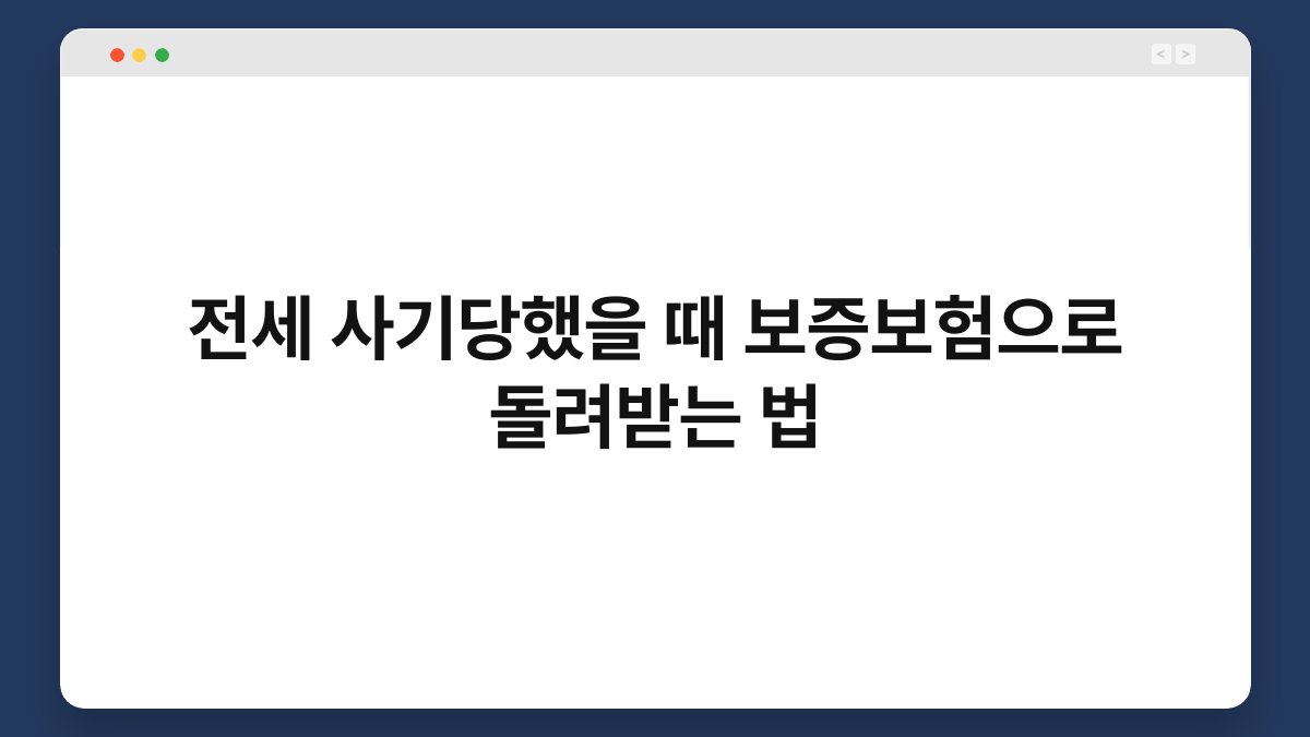 전세 사기를 당한 경험, 정말 힘든 일입니다. 하지만 이런 상황에서도 희망이 있습니다. 보증보험을 통해 피해를 최소화할 수 있는 방법이 존재하니까요. 이 글에서는 전세 사기를 당했을 때 보증보험으로 돌려받는 법을 자세히 설명드리겠습니다. 도움이 되는 정보가 가득하니 끝까지 함께해 주세요.