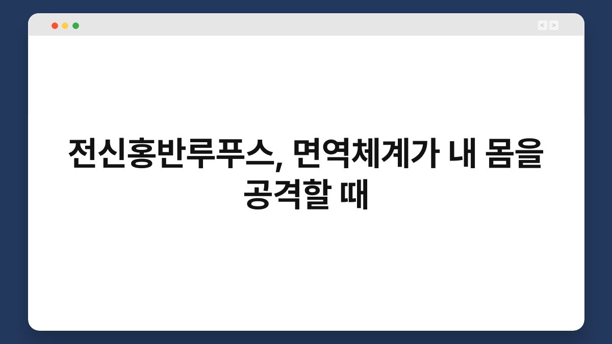전신홍반루푸스, 이 이름은 생소할 수 있지만, 많은 사람들에게 큰 영향을 미치는 질환입니다. 면역체계가 내 몸을 공격할 때, 우리 몸은 어떻게 반응할까요? 전신홍반루푸스는 면역체계가 자신의 세포를 적으로 인식하고 공격하는 자가면역 질환입니다. 이 글에서는 전신홍반루푸스의 원인, 증상, 진단 방법, 치료 방법, 관리 방법을 다루어 보겠습니다. 이 정보를 통해 이 질환에 대한 이해를 높이고, 필요한 경우 적절한 대처를 할 수 있도록 돕겠습니다.