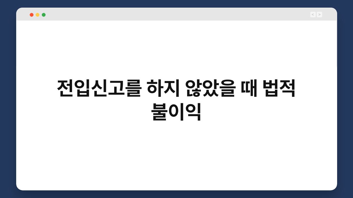 전입신고를 하지 않으면 어떤 법적 불이익이 따를까요? 많은 분들이 이 문제에 대해 간과하시기 쉬운데요. 전입신고는 단순한 행정 절차가 아닙니다. 이를 소홀히 하면 여러 가지 불이익이 발생할 수 있습니다. 이번 글에서는 전입신고의 중요성과 법적 불이익에 대해 자세히 알아보겠습니다.