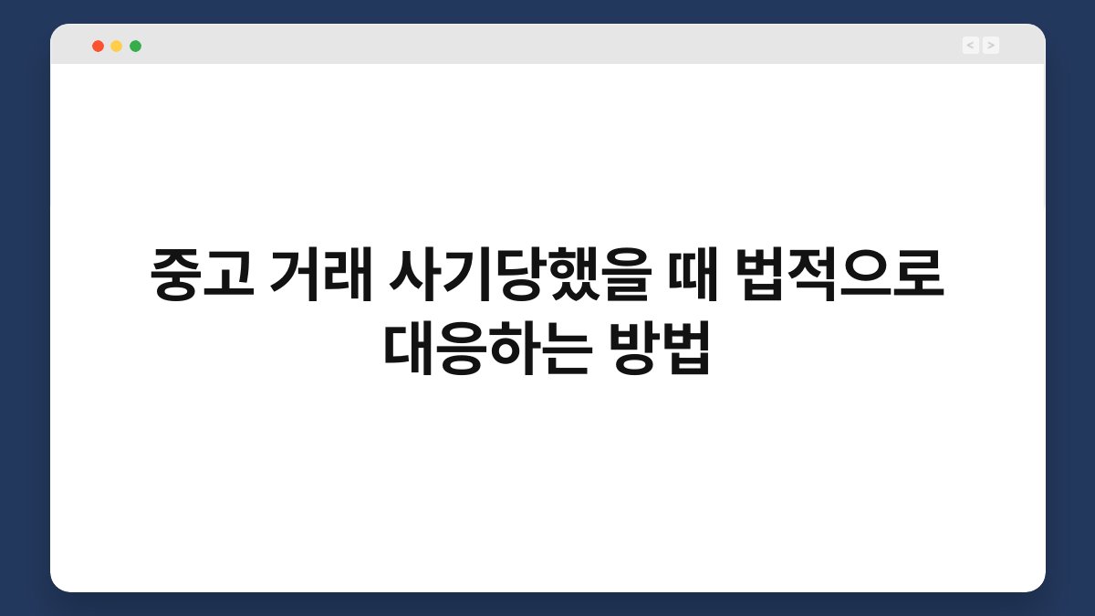 중고 거래는 요즘 많은 사람들이 활용하는 방법이지만, 사기를 당하는 경우도 적지 않습니다. 혹시 중고 거래에서 사기를 당한 경험이 있으신가요? 이런 상황에서는 법적으로 어떻게 대응해야 할지 막막할 수 있습니다. 이 글에서는 중고 거래 사기를 당했을 때의 법적 대응 방법을 자세히 안내해 드리겠습니다. 사기를 예방하는 방법과 함께, 문제가 발생했을 때의 대처법을 알아보면 더욱 도움이 될 것입니다. 끝까지 읽어보시면 유용한 정보를 얻을 수 있습니다.
