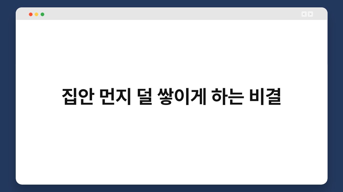 집안의 먼지, 생각보다 쉽게 관리할 수 있습니다. 매일 쌓이는 먼지 때문에 스트레스를 받는 분들이 많죠? 하지만 걱정하지 마세요. 집안 먼지가 덜 쌓이게 하는 비결을 알려드릴게요. 이 글을 통해 실질적인 팁을 얻고, 쾌적한 환경을 만들어보세요. 여러분의 집이 더욱 깨끗해질 수 있는 방법을 함께 살펴보겠습니다.