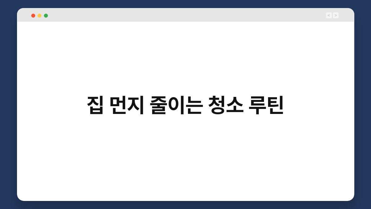 집안의 먼지, 매일 청소를 해도 왜 이렇게 늘어나는 걸까요? 많은 분들이 이 문제에 공감하실 겁니다. 특히 알레르기나 호흡기 질환이 있는 분들은 더욱 민감하게 반응하죠. 하지만 걱정하지 마세요. 집 먼지를 줄이는 청소 루틴을 통해 깨끗하고 건강한 공간을 만들 수 있습니다. 이 글에서는 효과적인 청소 방법과 루틴을 소개해 드릴게요. 함께 읽어보아요!