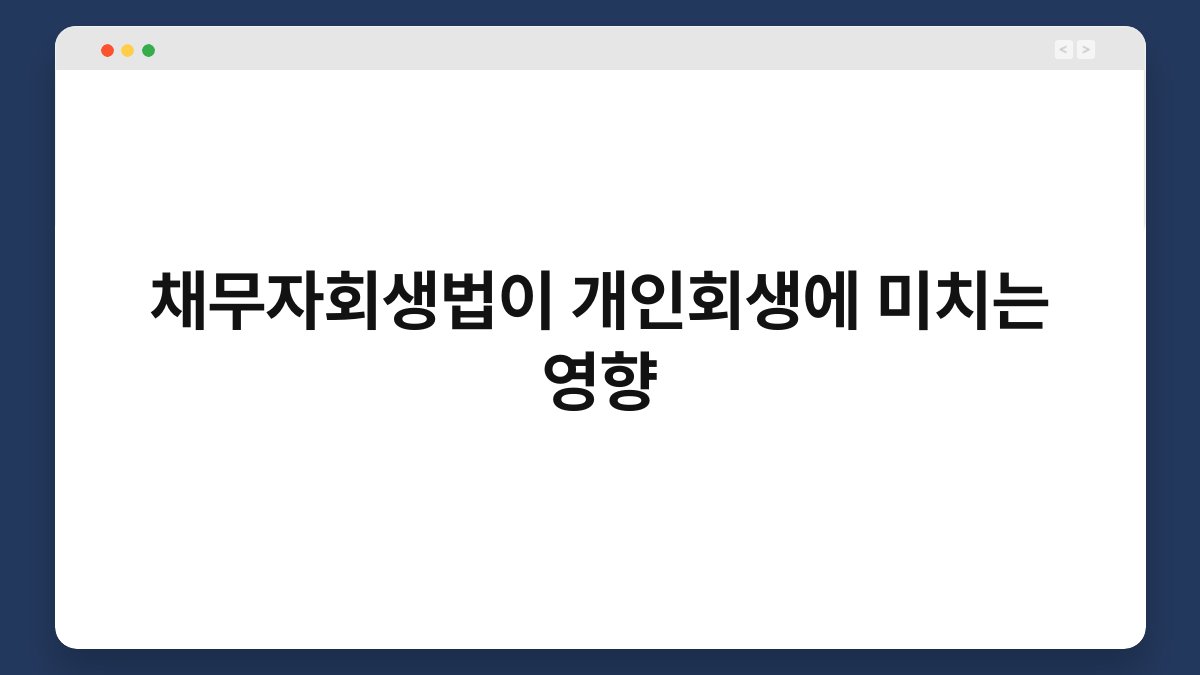 채무 문제로 인해 고민하고 계신가요? 많은 사람들이 이러한 상황에서 개인회생을 고려하게 됩니다. 채무자회생법은 개인회생에 큰 영향을 미치는 중요한 법률입니다. 이 글에서는 채무자회생법이 개인회생에 미치는 여러 측면을 살펴보며, 독자 여러분이 보다 나은 결정을 내릴 수 있도록 돕고자 합니다. 끝까지 읽어보시면 유용한 정보가 가득하니 기대해 주세요.