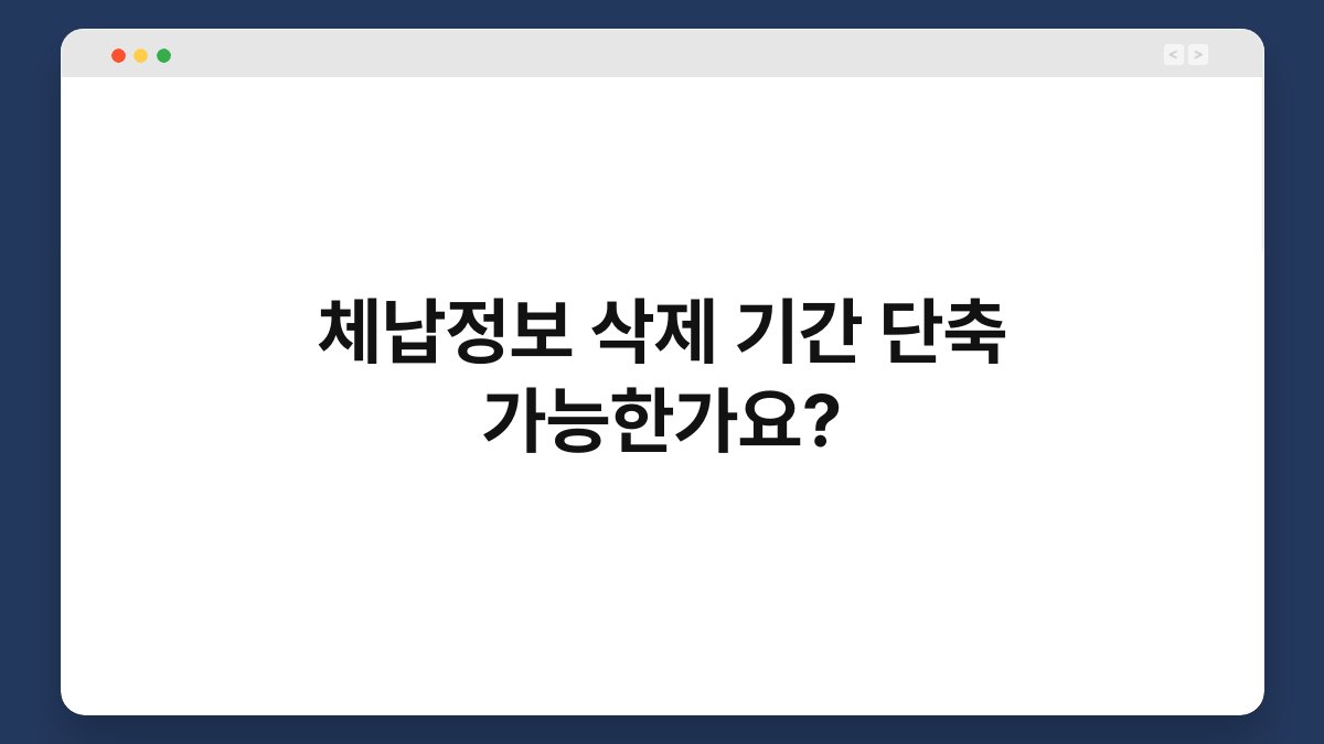 체납정보는 공공기관이나 금융기관에 의해 관리되는 정보입니다. 이 정보가 등록되면, 다양한 금융 거래에 불이익을 초래할 수 있습니다. 체납정보는 일반적으로 5년 동안 유지되며, 이 기간이 지나면 자동으로 삭제됩니다. 하지만 이 기간을 단축하는 방법이 있다는 사실, 알고 계셨나요?