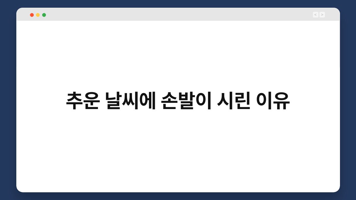 추운 날씨에 손발이 시린 경험, 누구나 한 번쯤 겪어보셨을 겁니다. 차가운 바람이 불면 손끝이 저리고 발끝이 시려오는 것이죠. 이런 증상은 단순한 불편함이 아니라, 몸이 보내는 중요한 신호일 수 있습니다. 오늘은 추운 날씨에 손발이 시린 이유와 그 해결책을 알아보겠습니다. 이 글을 통해 겨울철 건강을 지키는 방법을 함께 배워보세요.