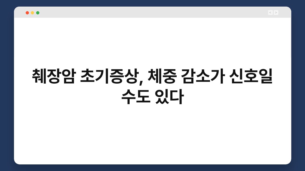 췌장암은 초기 증상이 뚜렷하지 않아 많은 사람들이 간과하는 경우가 많습니다. 특히 체중 감소는 단순한 다이어트나 스트레스 때문이라고 생각하기 쉬운데요, 이럴 때 주의가 필요합니다. 체중이 줄어드는 것, 이는 췌장암의 초기 신호일 수 있습니다. 오늘은 췌장암 초기 증상과 그 중에서도 체중 감소에 대해 자세히 알아보겠습니다. 이 정보를 통해 더욱 건강한 삶을 유지하는 데 도움이 되길 바랍니다.