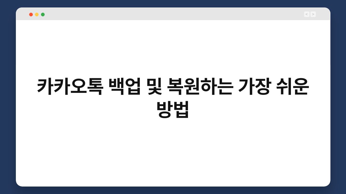 카카오톡, 우리 일상에서 빼놓을 수 없는 소통 도구죠? 하지만 기기 변경이나 데이터 손실로 인해 소중한 대화 내용이나 사진이 사라질 수 있다는 걱정, 누구나 한 번쯤은 해보셨을 겁니다. 다행히도 카카오톡 백업 및 복원하는 가장 쉬운 방법이 있습니다. 오늘은 이 과정을 쉽게 따라할 수 있도록 단계별로 안내해 드릴게요. 끝까지 함께 해주시면 유용한 팁을 얻으실 수 있습니다.