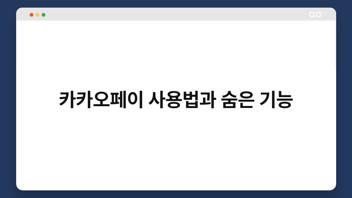 카카오페이, 이제는 많은 분들이 일상에서 자주 사용하는 결제 수단이 되었죠. 하지만 기본적인 사용법 외에도 숨겨진 기능들이 많다는 사실, 알고 계셨나요? 이번 글에서는 카카오페이를 더욱 스마트하게 활용할 수 있는 방법과 유용한 숨은 기능들을 소개해 드리겠습니다. 이 글을 읽고 나면 카카오페이의 진정한 매력을 발견하게 될 거예요. 자, 그럼 함께 시작해 볼까요?