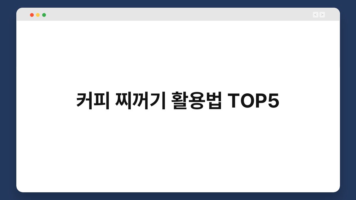 커피를 즐기는 분들이라면 커피 찌꺼기가 남는 것은 익숙하실 겁니다. 하지만 이 커피 찌꺼기를 어떻게 활용할 수 있을까요? 많은 사람들이 버리기 쉬운 이 찌꺼기는 사실 다양한 용도로 재탄생할 수 있습니다. 오늘은 커피 찌꺼기를 활용하는 TOP 5 방법을 소개해 드릴게요. 이 글을 통해 커피 찌꺼기를 버리지 않고도 유용하게 사용할 수 있는 방법을 알아보세요.