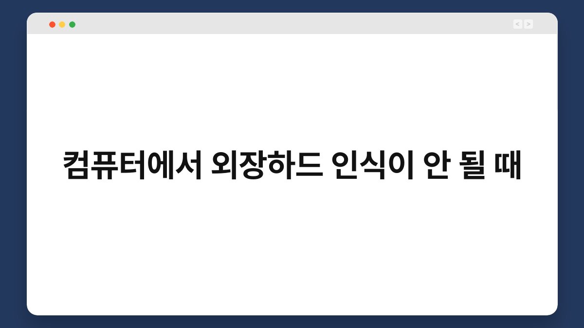 컴퓨터를 사용할 때 외장하드가 인식되지 않는 상황, 정말 당황스럽죠? 중요한 파일을 저장하고 싶을 때, 혹은 백업을 하려 할 때 외장하드가 작동하지 않으면 큰 스트레스를 받을 수 있습니다. 이 글에서는 외장하드가 인식되지 않을 때의 원인과 해결 방법을 자세히 살펴보겠습니다. 끝까지 읽어보시면, 이 문제를 해결하는 데 도움을 받을 수 있을 거예요!