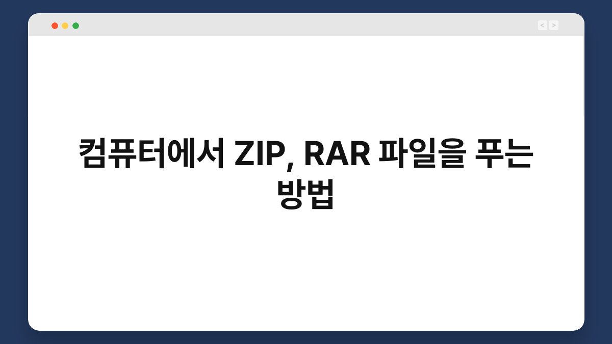 압축 파일을 다루는 것은 이제 더 이상 어렵지 않습니다. ZIP과 RAR 파일을 쉽게 푸는 방법을 알고 나면, 파일 관리가 훨씬 수월해질 거예요. 지금 바로 필요한 파일을 압축 해제해보세요!