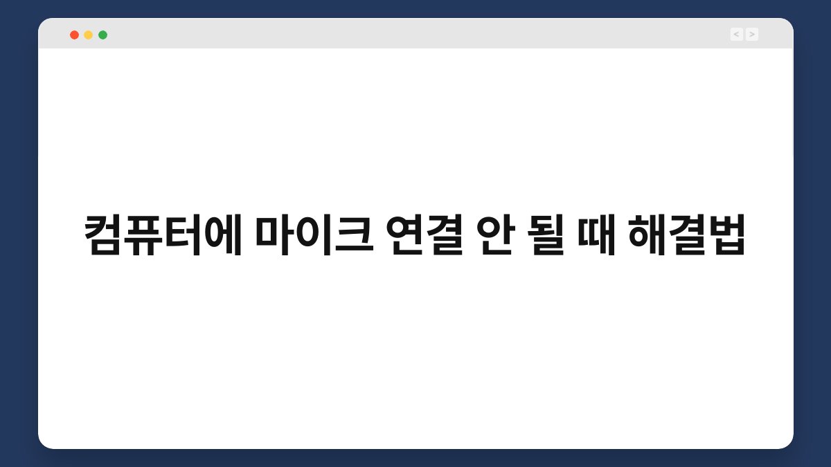 컴퓨터에 마이크를 연결했는데 소리가 안 나올 때, 정말 당황스럽죠? 특히 화상 회의나 게임을 할 때는 더욱 그렇습니다. 이 글에서는 마이크 문제를 해결하는 다양한 방법을 소개하겠습니다. 독자 여러분이 겪는 불편함을 덜어드리기 위한 유용한 팁을 담고 있으니 끝까지 함께해 주세요. 컴퓨터에 마이크 연결이 안 될 때 해결법을 알아보며, 스트레스를 줄여보세요.