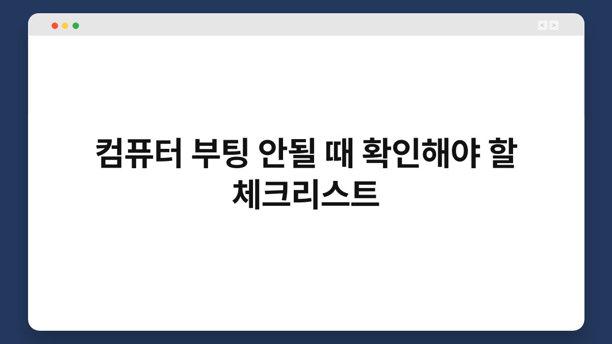 컴퓨터가 부팅되지 않는 상황, 누구에게나 한번쯤은 겪어본 일입니다. 갑자기 화면이 꺼지거나, 부팅 화면에서 멈춘다면 당황스럽죠? 하지만 걱정하지 마세요. 이 글에서는 컴퓨터 부팅 안 될 때 확인해야 할 체크리스트를 통해 문제를 해결하는 방법을 안내해 드리겠습니다. 함께 차근차근 체크해보며 원인을 파악해보도록 해요.