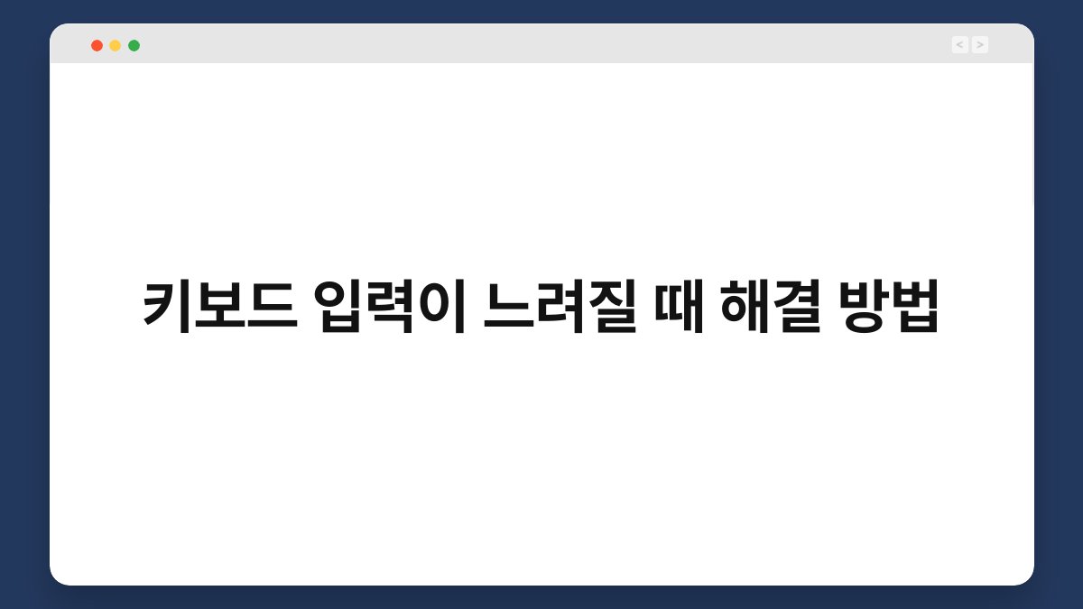 키보드 입력이 느려지는 경우, 하드웨어 문제일 가능성도 있습니다. 키보드가 오래되었거나 손상이 있다면, 교체를 고려해보셔야 합니다.