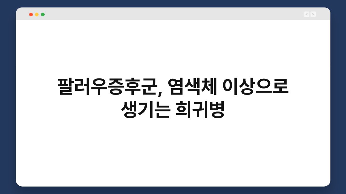 운동을 하거나 건강한 식습관을 유지하는 것, 누구나 중요하다고 생각하죠? 하지만 때로는 우리가 통제할 수 없는 어려운 상황에 직면하기도 합니다. 그중 하나가 바로 팔러우증후군입니다. 이 질환은 염색체 이상으로 인해 발생하는 희귀병으로, 많은 사람들이 잘 알지 못하는 문제입니다. 오늘은 팔러우증후군의 원인, 증상, 진단 및 치료 방법에 대해 알아보며 이 질환에 대한 이해를 높여보겠습니다.
