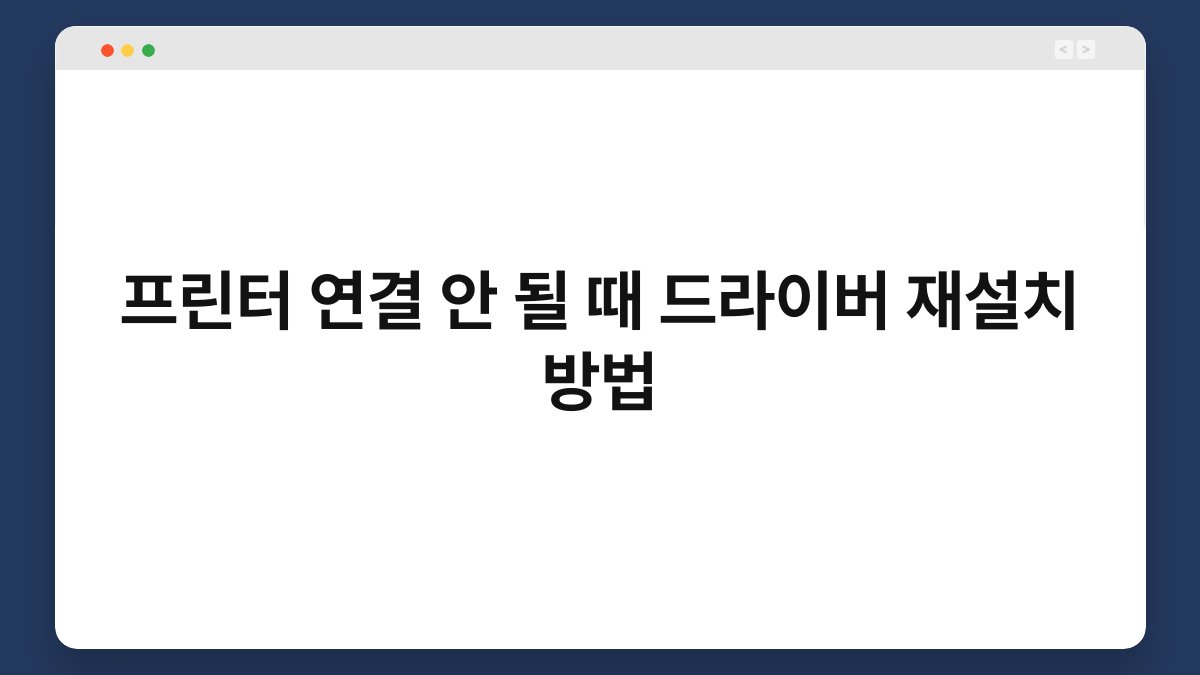 프린터가 연결되지 않을 때, 정말 당황스럽죠? 특히 중요한 문서가 필요할 때는 더욱 그렇습니다. 이런 상황에서 드라이버 재설치는 많은 문제를 해결할 수 있는 효과적인 방법입니다. 드라이버는 프린터와 컴퓨터 간의 소통을 담당하는 중요한 역할을 하니까요. 이 글에서는 프린터 연결 안 될 때 드라이버 재설치 방법을 단계별로 안내해 드리겠습니다. 이제 걱정 없이 프린터를 사용할 수 있도록 해볼까요?