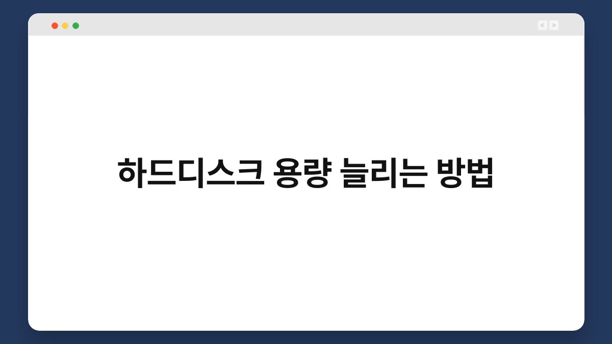 하드디스크 용량이 부족해지면 불편함을 느끼는 경우가 많습니다. 사진, 동영상, 프로그램이 쌓여가면서 용량이 빠르게 소진되죠. 하지만 걱정하지 마세요. 하드디스크 용량 늘리는 방법은 여러 가지가 있습니다. 이 글에서는 간단하고 효과적인 방법들을 소개해드리겠습니다. 마지막까지 함께 해주세요!