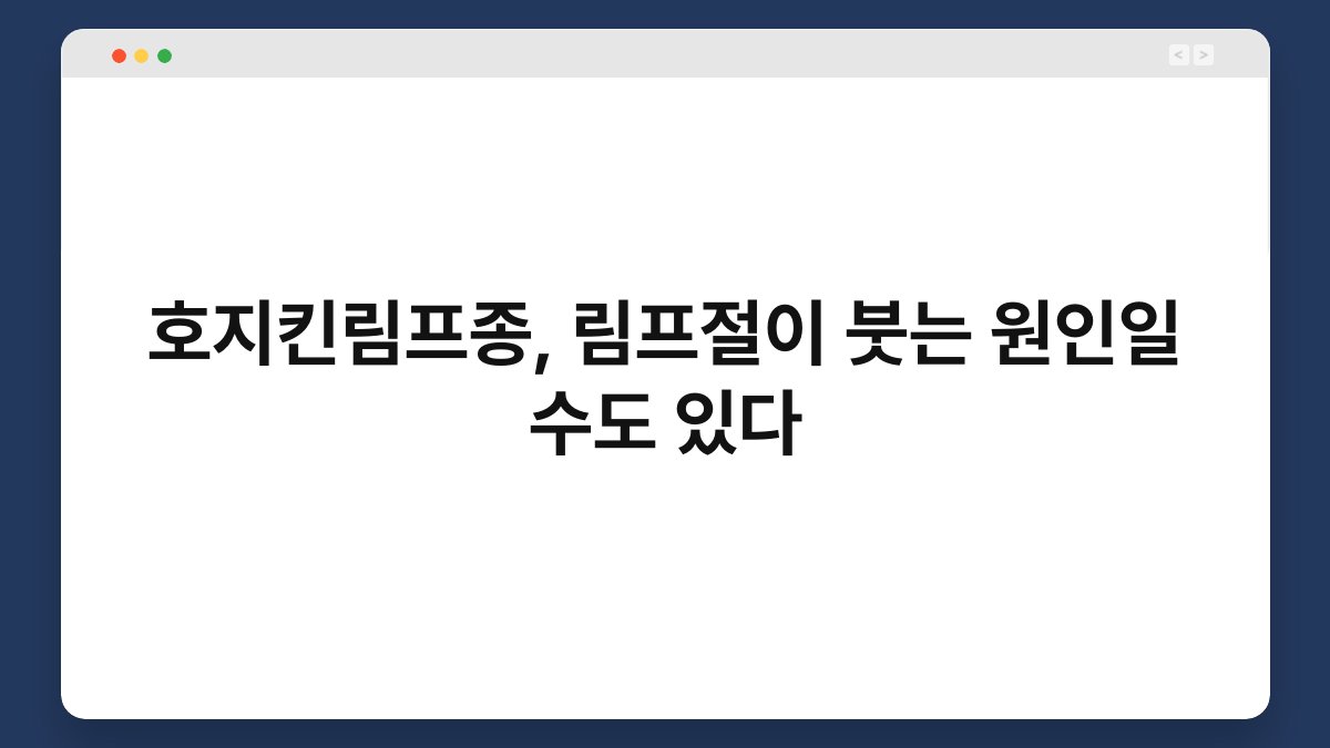 많은 분들이 림프절이 붓는 증상에 대해 간과할 수 있습니다. 그러나 이 증상은 단순한 피로나 감기로 치부할 것이 아닙니다. 호지킨림프종과 같은 심각한 질환의 신호일 수 있으니 주의가 필요합니다.