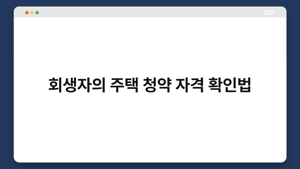 ✅ 회생자도 일정 조건을 만족하면 청약 당첨 기회를 가질 수 있습니다.