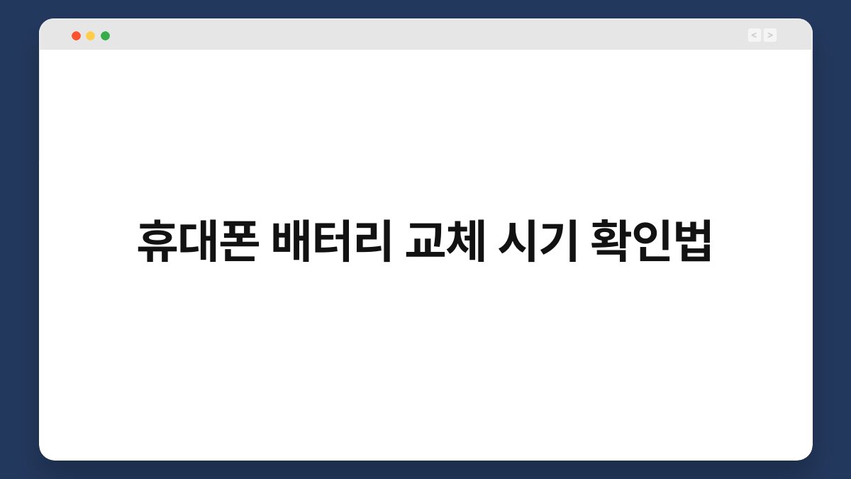 휴대폰을 사용하다 보면 배터리 문제로 고민하는 순간이 많습니다. 특히, 언제 배터리를 교체해야 할지 고민하는 분들이 많을 텐데요. 배터리 수명이 다해가고 있다는 신호를 잘 파악하는 것이 중요합니다. 이 글에서는 휴대폰 배터리 교체 시기를 확인하는 방법을 자세히 알아보겠습니다. 따라서, 배터리 수명에 대한 이해를 돕고, 적절한 시기에 교체하여 더욱 편리한 스마트폰 사용을 도와드리겠습니다.