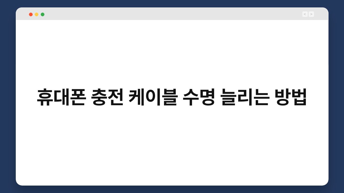 휴대폰 충전 케이블, 여러분은 얼마나 자주 교체하시나요? 케이블이 자주 끊어지거나 고장 나면 불편함이 클 수 있습니다. 하지만 몇 가지 간단한 방법을 통해 휴대폰 충전 케이블의 수명을 늘릴 수 있다는 사실, 알고 계셨나요? 이 글에서는 효과적인 관리 방법과 주의할 점을 소개해드리겠습니다. 마지막까지 함께 해주세요!