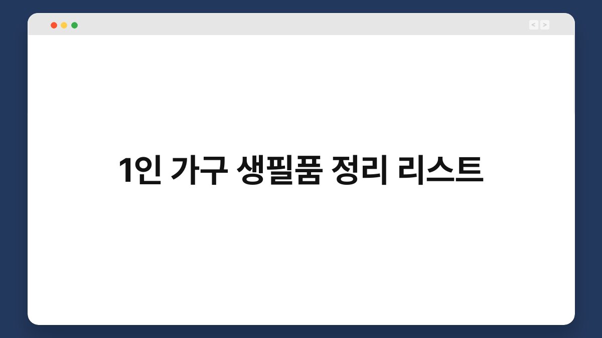 혼자 사는 1인 가구가 늘어나는 요즘, 생필품 정리는 필수입니다. 하지만 어떤 것들이 꼭 필요할까요? 이 글에서는 1인 가구를 위한 생필품 정리 리스트를 소개해 드리겠습니다. 효율적으로 정리하면 생활이 훨씬 편리해질 수 있습니다. 함께 알아보시죠!