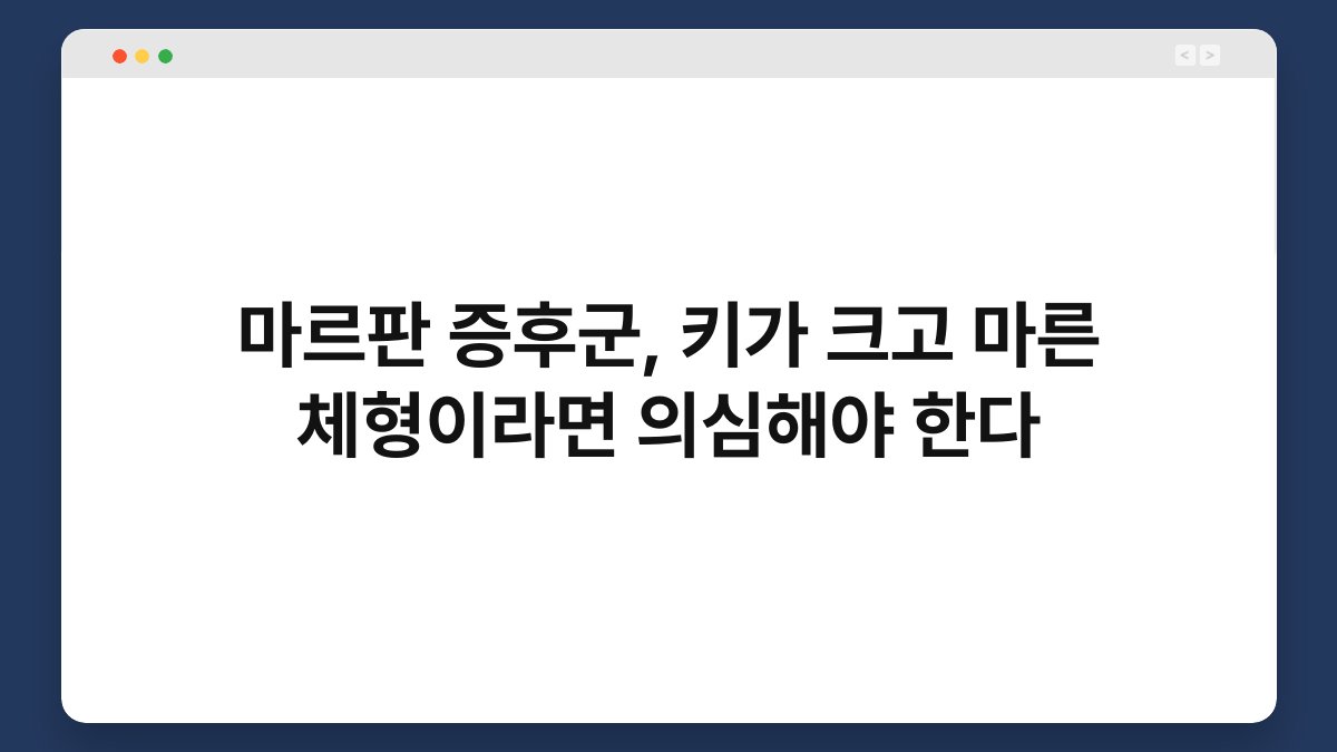 키가 크고 마른 체형인 분들, 혹시 마르판 증후군에 대해 들어보셨나요? 이 증후군은 유전적으로 발생하는 질환으로, 주로 신체의 여러 부분에 영향을 미칩니다. 특히 키가 크고 마른 체형을 가진 분들은 이 증후군의 가능성을 염두에 두어야 합니다. 오늘은 마르판 증후군의 증상과 진단 방법, 그리고 관리 방법에 대해 알아보겠습니다. 이 글을 통해 자신이나 주변 사람들의 건강에 대한 중요한 정보를 얻어보세요.
