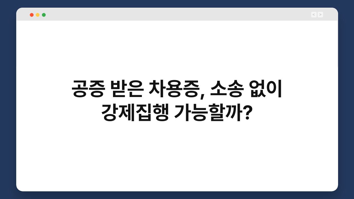 차용증, 특히 공증을 받은 차용증은 많은 분들이 대출이나 금전 거래에 있어 중요한 역할을 합니다. 하지만 공증을 받았다고 해서 무조건 소송 없이 강제집행이 가능한지는 궁금한 부분이죠. 이 글에서는 공증 받은 차용증의 법적 효력과 강제집행 가능성에 대해 자세히 알아보겠습니다. 법적 절차와 관련된 정보가 필요하시다면 끝까지 함께해 주세요.