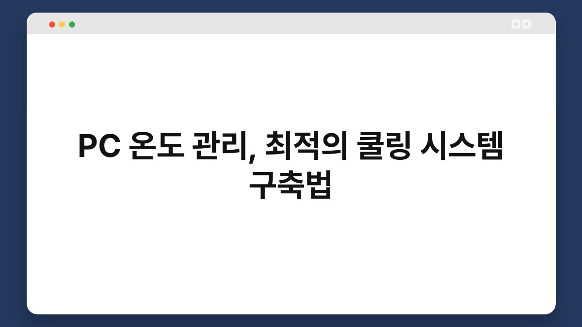 PC를 사용하다 보면 온도가 올라가는 문제를 경험하신 적이 많으실 겁니다. 과열은 성능 저하와 부품 손상의 원인이 될 수 있어요. 이 글에서는 PC 온도 관리의 중요성과 최적의 쿨링 시스템 구축법에 대해 알아보겠습니다. 여러분의 소중한 컴퓨터를 보호하고 성능을 극대화하는 방법을 제시할게요. 함께 알아보시죠!