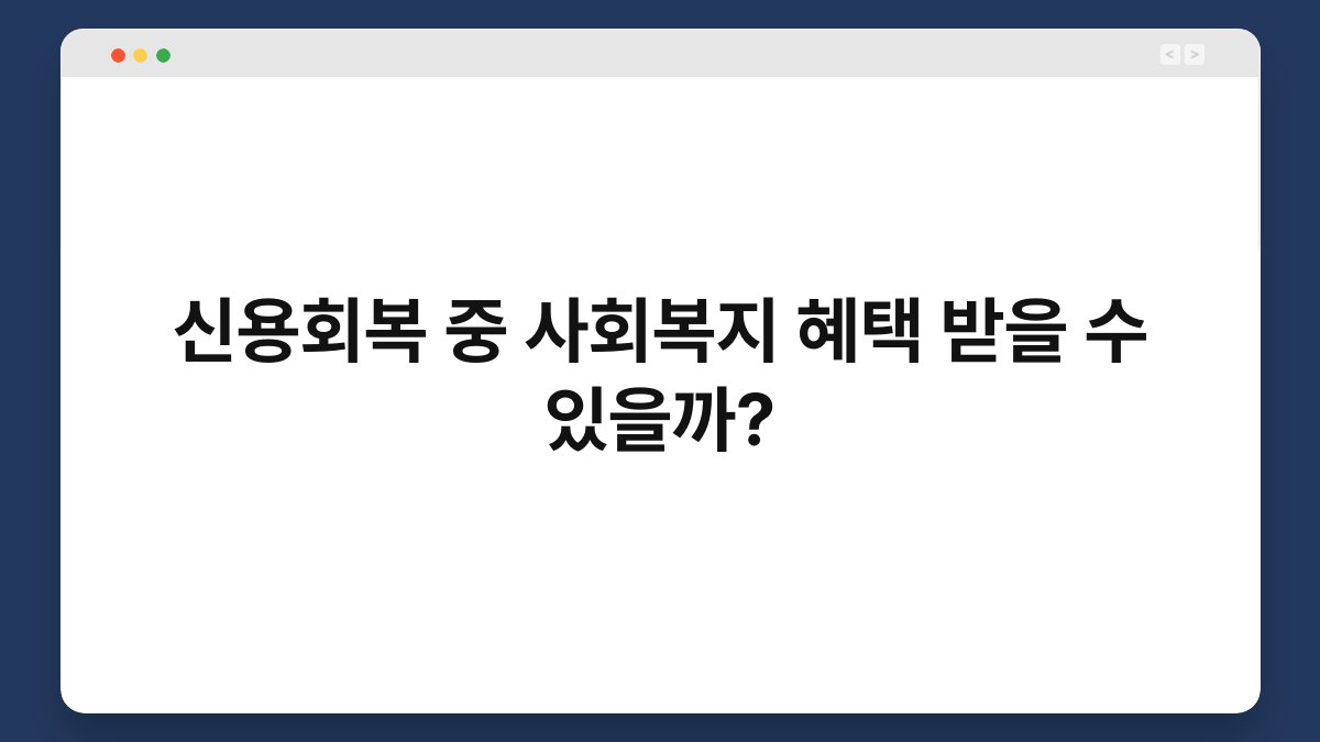 Q1: 신용회복 중 어떤 사회복지 혜택을 받을 수 있나요?