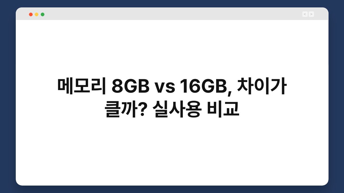 컴퓨터나 스마트폰을 사용할 때, 메모리 용량이 얼마나 중요한지 느끼신 적 있으신가요? 메모리 8GB와 16GB의 차이는 단순한 숫자 이상의 의미를 가집니다. 특히 요즘처럼 다양한 프로그램과 앱을 동시에 사용하는 시대에서는 더더욱 그렇습니다. 이 글에서는 메모리 용량의 차이가 실사용에서 어떤 영향을 미치는지, 그리고 여러분의 선택에 도움이 될 정보를 제공하겠습니다. 끝까지 읽으시면, 메모리 선택에 대한 명확한 기준을 세울 수 있을 것입니다.