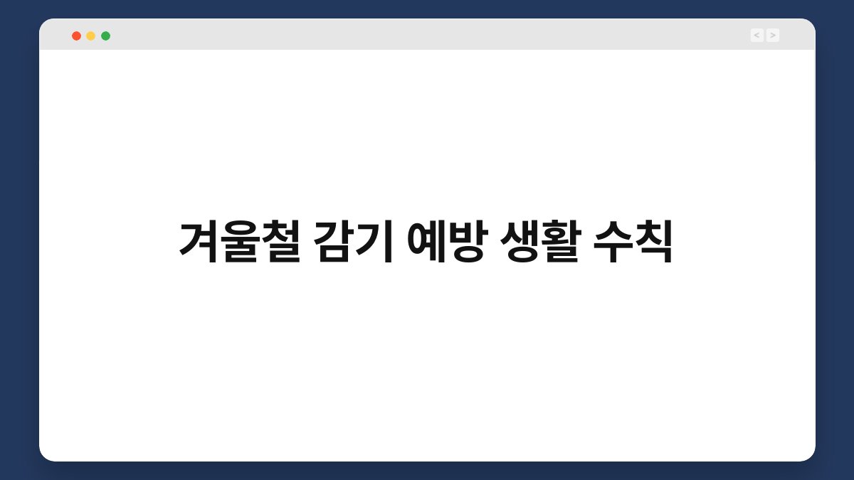 겨울철, 감기는 누구에게나 찾아올 수 있는 불청객입니다. 추운 날씨와 건조한 공기가 우리의 면역력을 떨어뜨리기 때문인데요. 하지만 걱정하지 마세요! 겨울철 감기 예방을 위한 생활 수칙을 알아보면, 건강하게 이 겨울을 보낼 수 있습니다. 이 글에서는 간단하면서도 효과적인 감기 예방 방법을 소개할 예정입니다. 함께 읽어보시죠! 수분 섭취의 중요성 왜 수분이 필요할까요? 겨울철에는 공기가 건조해지기 쉬워요. 이럴 때 수분 … 더 읽기