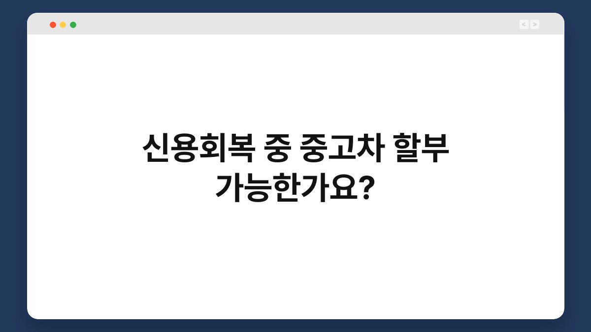 신용회복 중에 중고차 할부가 가능한지 궁금하신가요? 신용 문제가 있을 때, 차량 구매가 어려워질 수 있다는 점은 많은 분들이 공감하실 겁니다. 하지만 희망이 없는 것은 아닙니다. 신용회복 절차를 밟고 있는 분들도 중고차 할부를 이용할 수 있는 방법이 있습니다. 이 글에서는 신용회복 중 중고차 할부 가능성에 대해 자세히 알아보겠습니다. 신용회복의 이해 신용회복이란, 신용불량 상태에서 벗어나기 위해 개인이 … 더 읽기