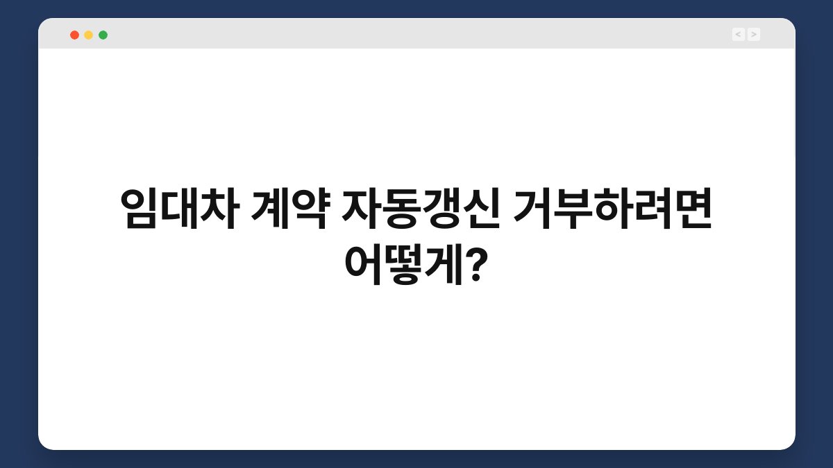 임대차 계약을 체결한 후, 자동으로 갱신되는 시스템에 대해 고민해보신 적 있으신가요? 많은 사람들이 이 조항 때문에 불편함을 느낄 때가 있습니다. 특히, 원치 않는 계약 연장을 피하고 싶다면 어떻게 해야 할지 막막할 수 있습니다. 이 글에서는 임대차 계약의 자동갱신을 거부하는 방법을 자세히 안내해 드리겠습니다. 함께 알아보면서 불필요한 걱정을 덜어보세요. 임대차 계약의 자동갱신 이해하기 임대차 계약의 자동갱신 … 더 읽기