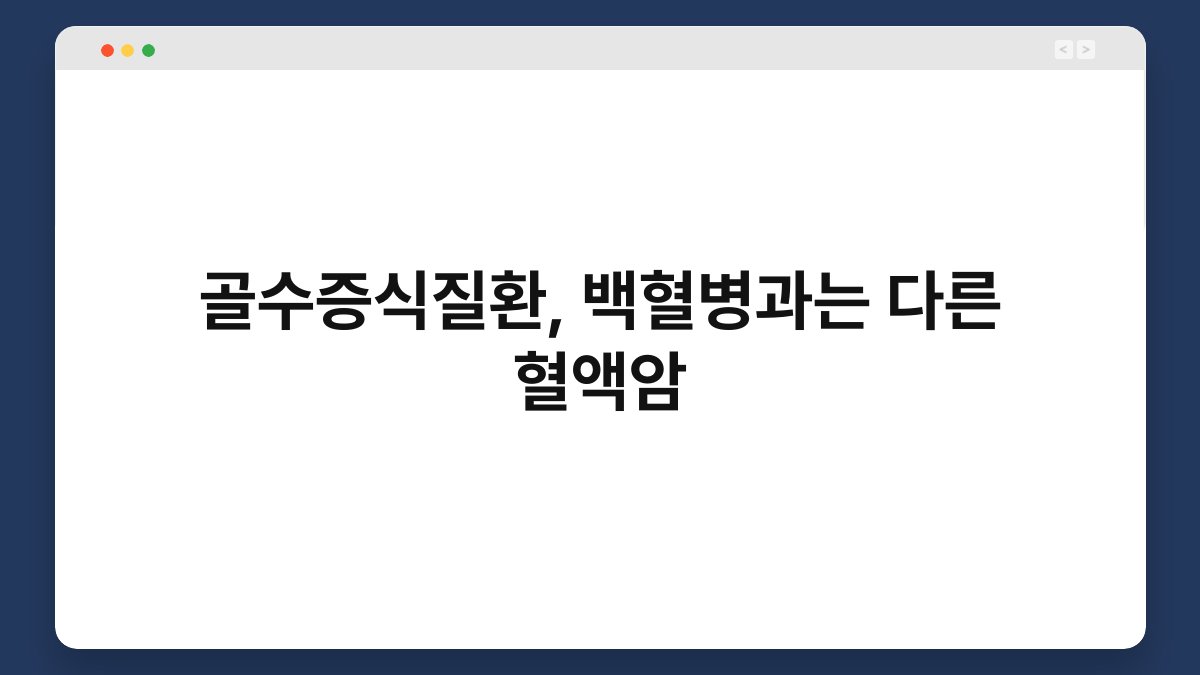 혈액암이라고 하면 많은 분들이 백혈병을 떠올리실 텐데요. 하지만 오늘은 골수증식질환에 대해 이야기해보려고 합니다. 이 질환은 백혈병과는 다른 종류의 혈액암으로, 많은 사람들이 잘 알지 못하는 부분이죠. 골수증식질환은 혈액 세포가 비정상적으로 증가하는 질환으로, 조기 발견과 관리가 중요합니다. 이 글에서는 골수증식질환의 특징과 치료 방법, 그리고 예방에 대해 자세히 알아보겠습니다. 골수증식질환의 정의 골수증식질환이란? 골수증식질환은 골수에서 혈액 세포가 비정상적으로 생성되는 … 더 읽기