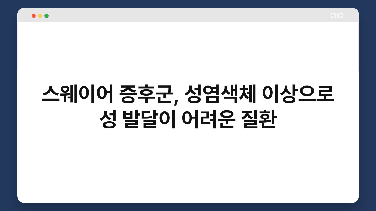스웨이어 증후군, 혹시 들어보셨나요? 이 질환은 성염색체 이상으로 인해 성 발달에 어려움을 겪는 상태를 말합니다. 많은 이들이 잘 알지 못하는 이 증후군은 개인의 삶에 큰 영향을 미칠 수 있습니다. 이번 글에서는 스웨이어 증후군의 원인, 증상, 진단 방법, 치료법, 그리고 생활 관리까지 다양한 정보를 제공해 드리겠습니다. 이 주제에 대해 더 깊이 알아보고 싶다면, 끝까지 함께 해 … 더 읽기