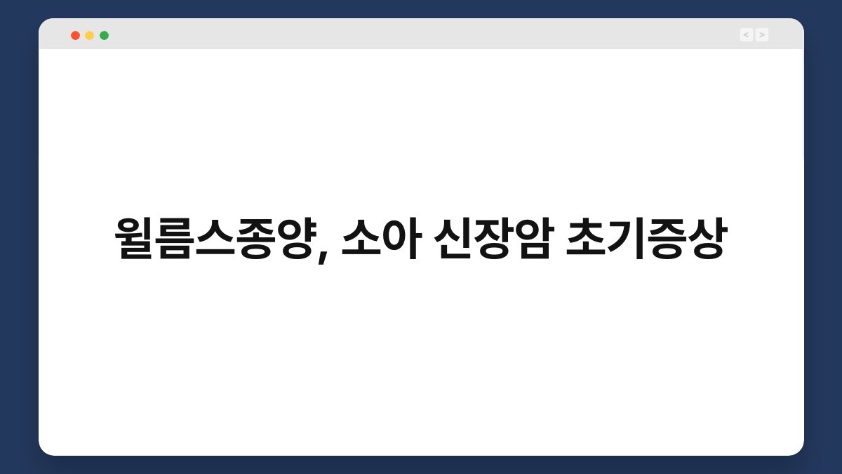 소아 신장암의 한 종류인 윌름스종양, 혹시 들어보셨나요? 이 질병은 주로 어린이에게 발생하며, 조기 발견이 매우 중요합니다. 초기 증상이 미미해 쉽게 간과될 수 있기 때문에, 부모님께서는 자녀의 건강에 더욱 주의해야 합니다. 오늘은 윌름스종양의 초기 증상과 관련된 정보를 함께 알아보겠습니다. 자녀의 건강을 지키기 위해 꼭 필요한 내용이니 끝까지 읽어보세요. 윌름스종양이란? 윌름스종양의 정의 윌름스종양은 소아 신장암 중 가장 … 더 읽기