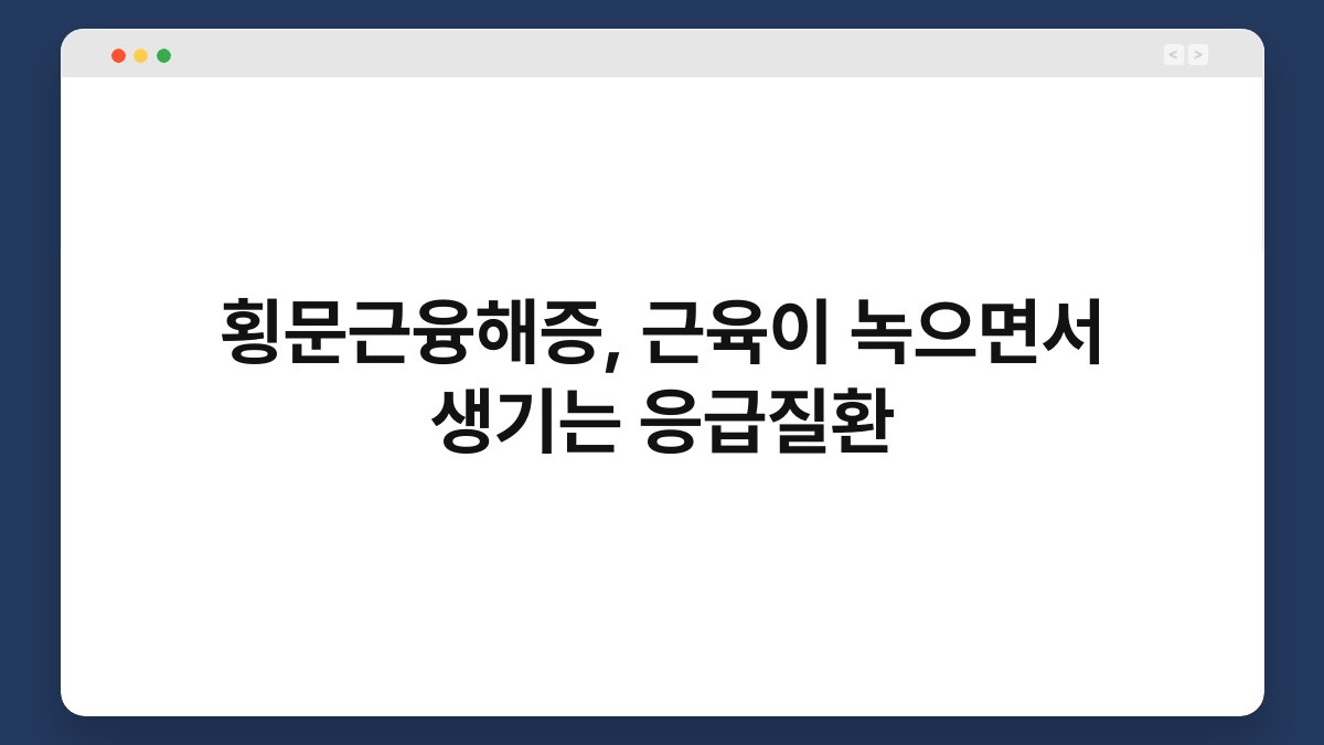 운동 후 갑작스러운 근육 통증이나 약화, 혹은 피로감을 느끼신 적이 있나요? 이러한 증상은 단순한 근육 피로가 아닐 수 있습니다. 특히, 횡문근융해증이라는 응급질환이 발생할 수 있는데요. 이 질환은 근육이 녹아내리면서 생기는 심각한 상태로, 적절한 조치를 취하지 않으면 생명에 위협을 줄 수 있습니다. 이번 글에서는 횡문근융해증의 원인과 증상, 예방 방법 등을 자세히 알아보겠습니다. 여러분의 건강을 지키기 위해 … 더 읽기