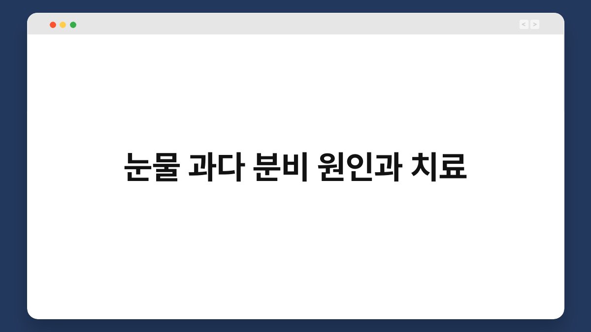 눈물은 우리의 감정 표현과 눈 건강에 중요한 역할을 합니다. 그러나 때때로 눈물이 과다하게 분비되는 경우가 있습니다. 이러한 현상은 여러 가지 원인으로 발생할 수 있으며, 적절한 치료가 필요합니다. 오늘은 눈물 과다 분비의 원인과 치료 방법에 대해 알아보겠습니다. 이 글을 통해 여러분의 궁금증을 해소하고, 건강한 눈을 유지하는 데 도움이 되기를 바랍니다. 눈물 과다 분비의 원인 알레르기 반응 … 더 읽기