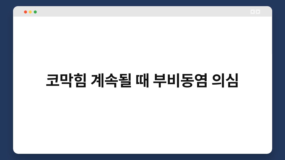 코막힘이 계속되면 정말 불편하죠? 숨쉬기도 힘들고 일상생활에 지장을 주기 마련입니다. 그런데 이 증상이 지속된다면 부비동염을 의심해볼 필요가 있습니다. 부비동염은 코막힘 외에도 다양한 증상을 동반할 수 있어, 정확한 진단과 적절한 치료가 중요합니다. 오늘은 코막힘이 계속될 때 부비동염의 가능성과 대처 방법에 대해 알아보겠습니다. 부비동염이란 무엇인가요? 부비동염은 부비동이라는 코 주변의 공간에 염증이 생기는 질환입니다. 이 공간은 코와 연결되어 … 더 읽기