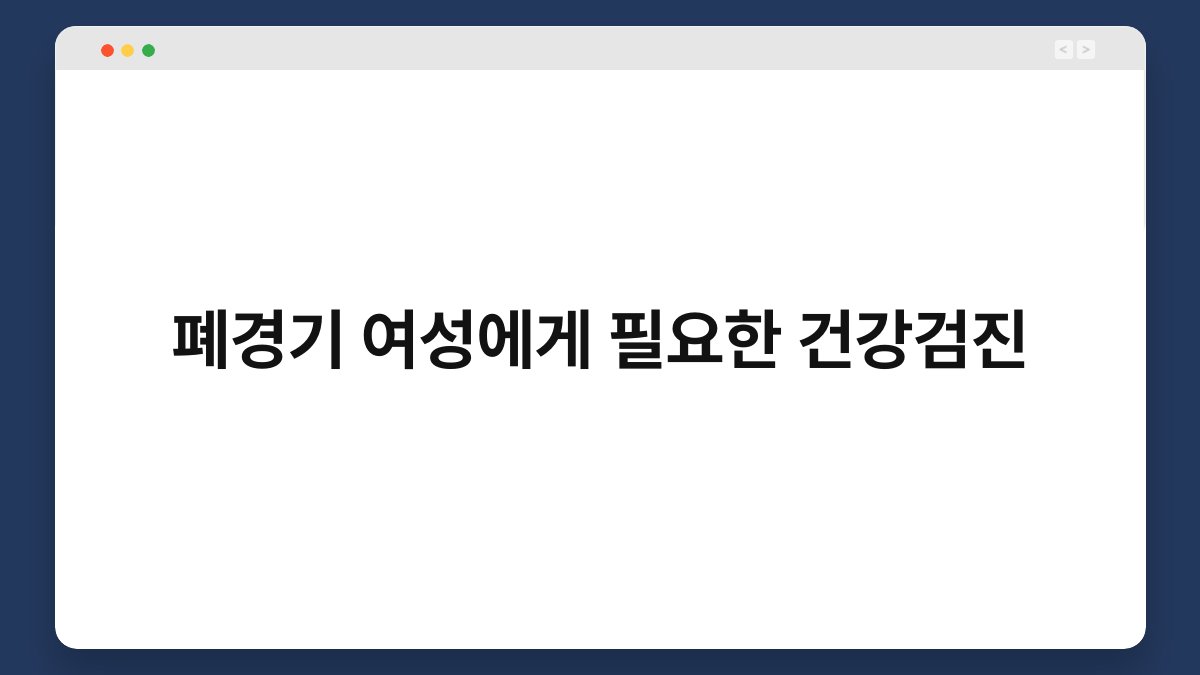 폐경기, 많은 여성들이 겪는 변화의 시기입니다. 이 과정에서 신체적, 정서적 변화가 일어나기 때문에 건강 관리가 더욱 중요해집니다. 특히, 폐경기 여성에게 필요한 건강검진은 이 시기를 건강하게 보내기 위한 필수 요소입니다. 오늘은 폐경기 여성들이 꼭 챙겨야 할 건강검진에 대해 알아보겠습니다. 이 정보를 통해 여러분의 건강을 지키는 데 도움이 되길 바랍니다. 폐경기와 호르몬 변화 호르몬 변화의 이해 폐경기는 … 더 읽기