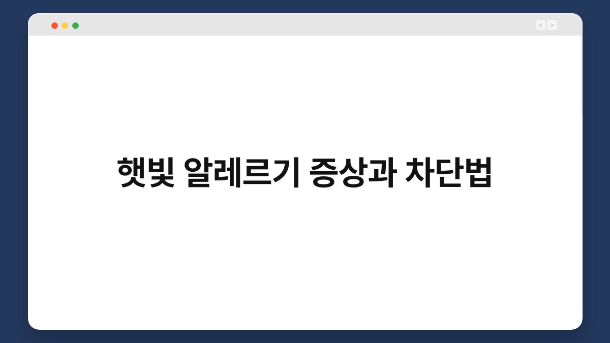 햇빛을 즐기는 여름, 하지만 그로 인해 불편한 증상에 시달리는 분들이 많습니다. 바로 햇빛 알레르기인데요, 이로 인해 가려움이나 발진 같은 증상이 나타날 수 있습니다. 이러한 증상은 여름철 외출을 망치기도 하죠. 그렇다면 햇빛 알레르기 증상은 무엇인지, 그리고 이를 어떻게 차단할 수 있는지 알아보겠습니다. 이 글을 통해 햇빛 알레르기로부터 자신을 보호하는 방법을 배워보세요. 햇빛 알레르기의 증상 햇빛 알레르기의 … 더 읽기