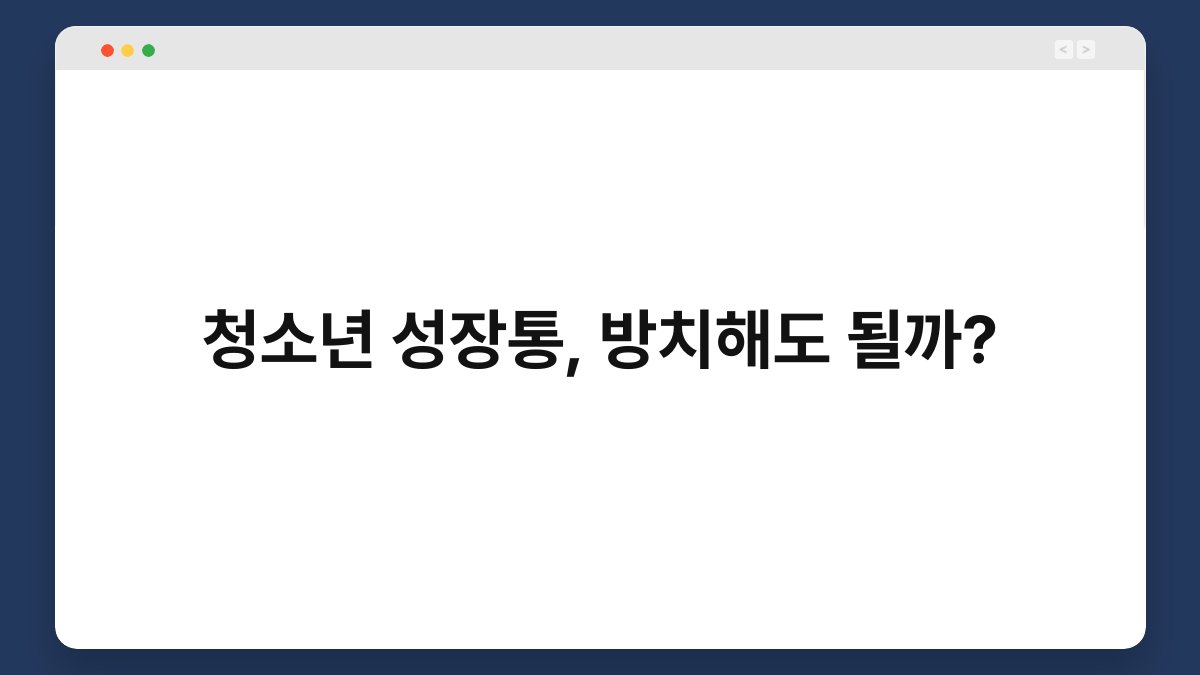 청소년 시기에 겪는 성장통, 과연 방치해도 될까요? 많은 부모님들이 이 질문에 대해 고민하고 계실 겁니다. 성장통은 단순한 신체적 불편함으로 여겨질 수 있지만, 심리적 측면에서도 중요한 의미를 지닙니다. 이 글에서는 청소년의 성장통이 무엇인지, 왜 방치하면 안 되는지에 대해 살펴보겠습니다. 또한, 이를 극복하기 위한 방법들도 제시할 예정이니 끝까지 함께해 주세요. 성장통의 정의와 원인 성장통이란 무엇인가요? 성장통은 주로 … 더 읽기