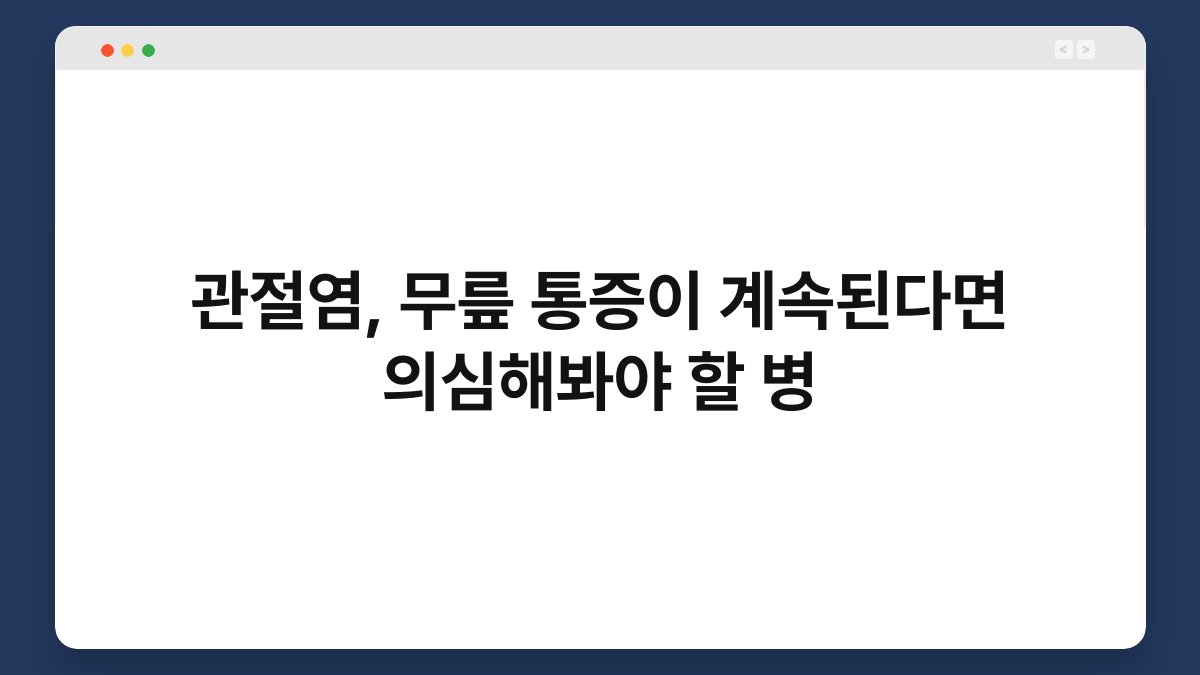 관절염, 무릎 통증이 계속된다면 의심해봐야 할 병
