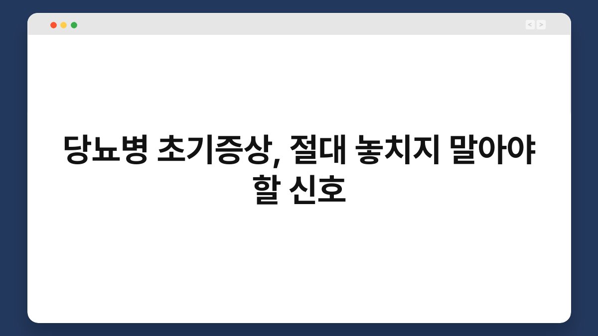 당뇨병 초기증상, 절대 놓치지 말아야 할 신호