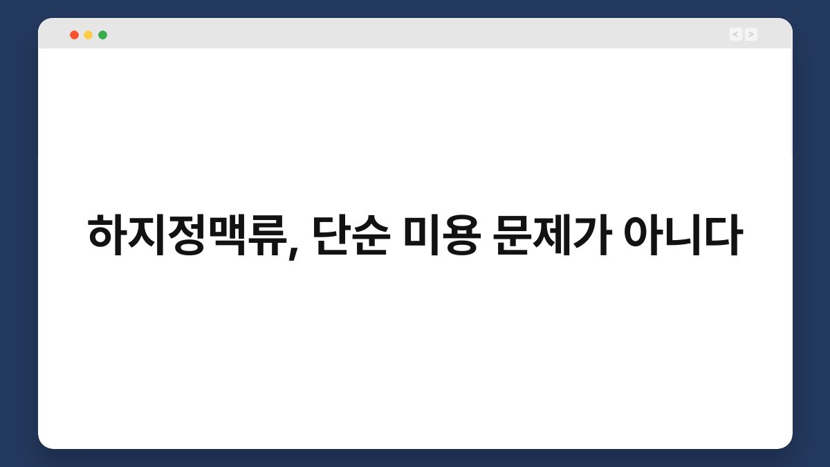 우리의 몸은 때때로 외부의 시선으로 인해 불편함을 느끼기도 합니다. 특히 하지정맥류는 많은 사람들이 단순히 미용적인 문제로 치부하는 경우가 많습니다. 하지만 이 증상은 단순한 미용 문제가 아닙니다. 하지정맥류는 혈액순환에 영향을 미치고, 장기적으로 건강에 해로운 영향을 미칠 수 있습니다. 오늘은 하지정맥류의 실제 위험성과 이를 예방하고 관리하는 방법에 대해 알아보겠습니다. 하지정맥류의 정의와 원인 하지정맥류란 무엇인가요? 하지정맥류는 다리의 정맥이 … 더 읽기