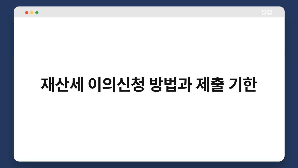 재산세, 많은 분들이 매년 받는 세금 고지서에 대해 불만을 느끼시죠? 하지만 자신의 재산세가 적절하게 부과되었는지 의문이 드는 경우, 이의신청을 통해 해결할 수 있습니다. 이 글에서는 재산세 이의신청 방법과 제출 기한에 대해 쉽게 설명드릴게요. 여러분이 알고 싶었던 정보가 가득하니, 끝까지 함께해 주세요! 이의신청의 필요성 재산세의 이해 재산세는 소유한 재산에 부과되는 세금으로, 각 지방자치단체에서 관리합니다. 이 세금은 … 더 읽기