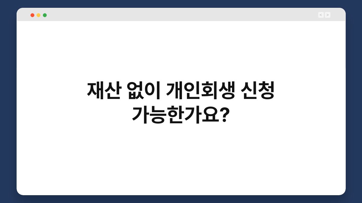 재산이 없어서 개인회생을 고민하고 계신가요? 많은 분들이 재산 유무에 따라 개인회생 신청이 가능할지 불안해하시곤 합니다. 하지만 재산이 없더라도 개인회생 절차를 통해 새로운 시작을 할 수 있습니다. 오늘은 재산 없이 개인회생 신청이 가능한지, 그 과정과 조건에 대해 자세히 알아보겠습니다. 이 글을 통해 여러분의 궁금증이 해소되길 바랍니다. 재산 없이 개인회생 신청할 수 있을까? 개인회생의 개념 개인회생은 경제적으로 … 더 읽기