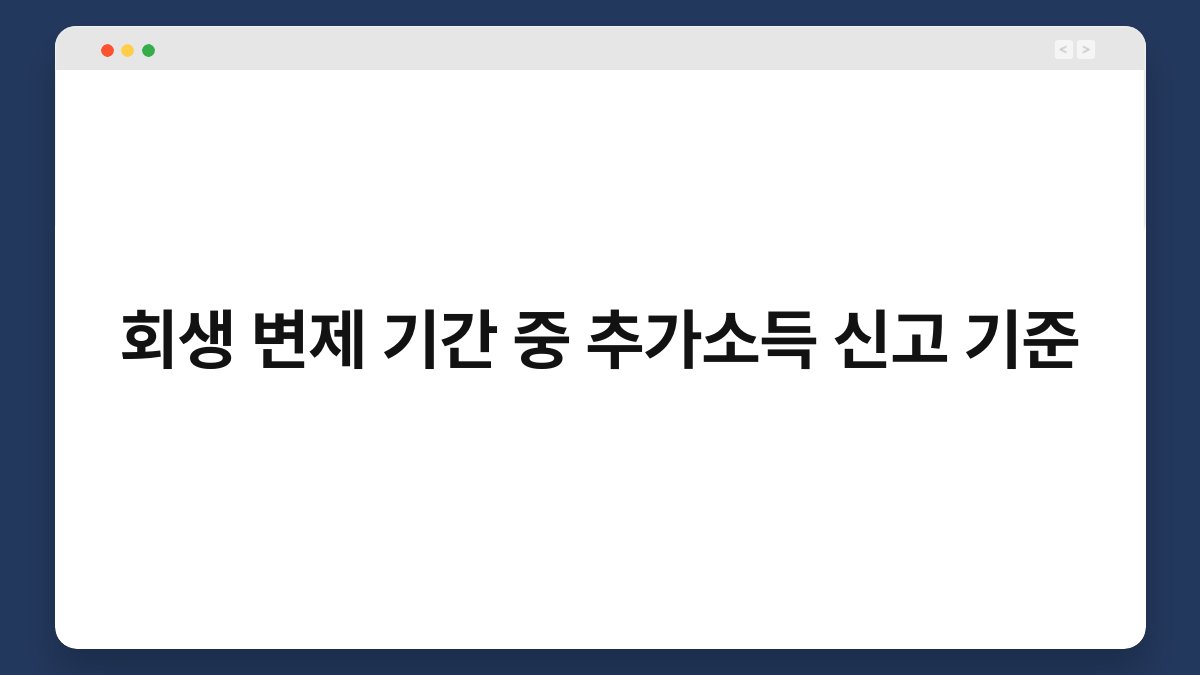 회생 절차를 진행하면서 추가 소득이 발생하는 경우, 어떻게 신고해야 할지 고민스러우신가요? 회생 변제 기간 중 추가 소득 신고 기준은 매우 중요한 사안입니다. 이 글에서는 변제 기간 동안 발생하는 추가 소득을 어떻게 처리해야 하는지, 그리고 신고 시 유의사항에 대해 설명드리겠습니다. 이러한 정보는 회생 절차를 원활하게 이어가는 데 큰 도움이 될 것입니다. 끝까지 읽어보시면 유용한 팁을 얻으실 … 더 읽기